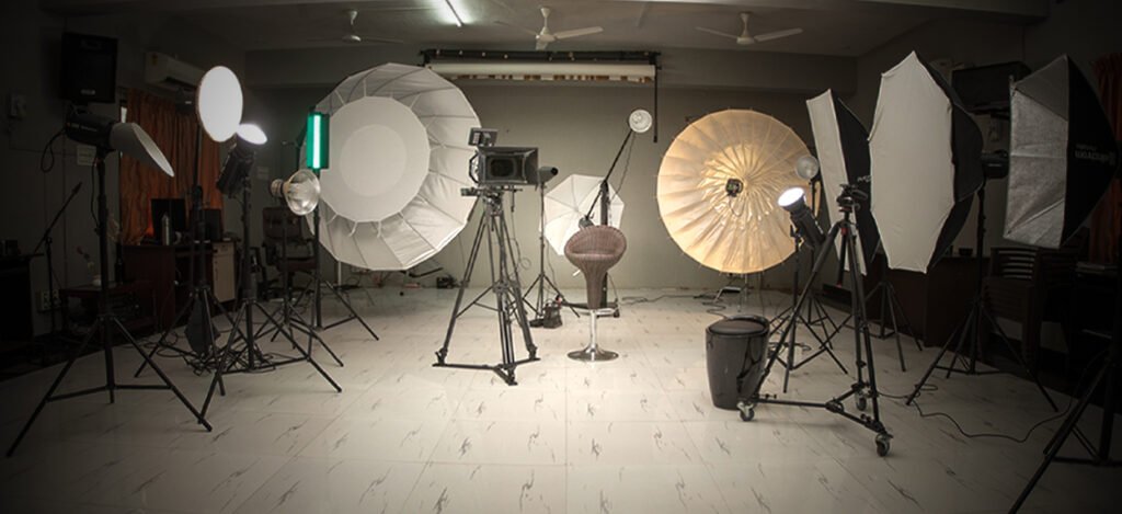 • Introduction to studio lighting equipment: softboxes, reflectors, diffusers, umbrellas